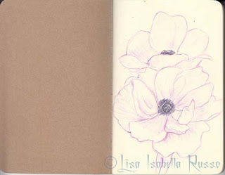 Here is a sketch of anemone flowers. It is in my tiny sketchbook that measures 3.5x5.5 inches. I'm unsure if I'll paint them or not, but I did enjoy sketching them.